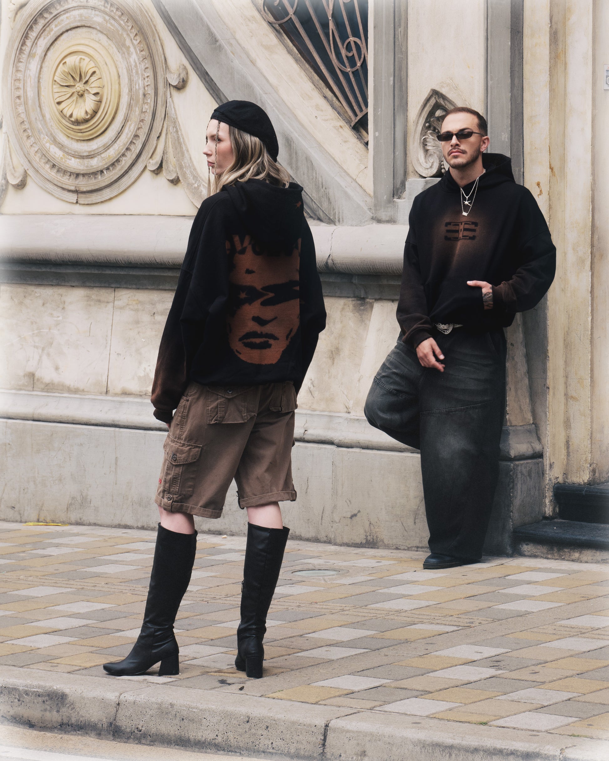 Cada pieza es intervenida a mano mediante un proceso experimental de estampación con cloro, generando patrones orgánicos y totalmente únicos. No hay dos iguales: cada hoodie es una edición irrepetible, marcada por el sello de manufactura consciente.