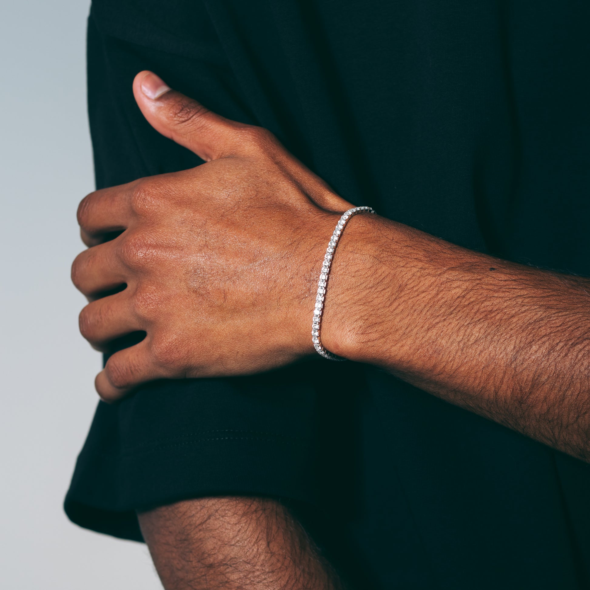 La Tennis FlexiShine una evolución audaz del diseño clásico. Elaborada en plata ley 925 con circones engastados a mano, esta pulsera se adapta con flexibilidad a cada movimiento, sin perder su forma ni su brillo.